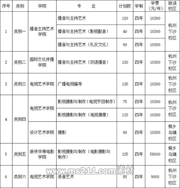 注:1.表演專業(yè)擬面向浙江、安徽、福建、貴州、湖北、湖南、遼寧、四川、重慶等9個省份招生,專業(yè)成績承認相應(yīng)省統(tǒng)考成績;北京、甘肅、廣東、河北、河南、黑龍江、吉林、江蘇、江西、內(nèi)蒙古、山東、山西、陜西、上海、天津、新疆、云南等17個省份的考生,可按各省考試院(招生辦)規(guī)定選擇在杭州考點參加我校組織的考試。