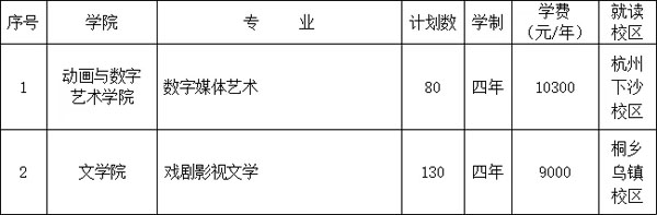 注:1.數(shù)字媒體藝術(shù)專業(yè)擬面向浙江、安徽、甘肅、貴州、河南、湖北、湖南、江蘇、江西、遼寧、山東、山西、四川、天津、重慶等15個省份招生,專業(yè)成績承認相應(yīng)省統(tǒng)考成績。