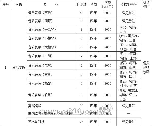 注:1.音樂表演(聲樂)專業(yè)擬面向浙江、安徽、福建、河北、河南、黑龍江、湖北、湖南、江蘇、江西、遼寧、內(nèi)蒙古、山西、上海、四川等15個省份招生,專業(yè)成績承認相應(yīng)省統(tǒng)考成績。