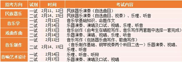 注:報(bào)考音樂系所有專業(yè)的考生需自備樂器(鋼琴除外)。