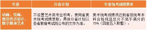 所有專業(yè)美術(shù)統(tǒng)考成績須達(dá)到省級(jí)統(tǒng)考本科合格線且總分不低于滿分的75%(四舍五入取整);
