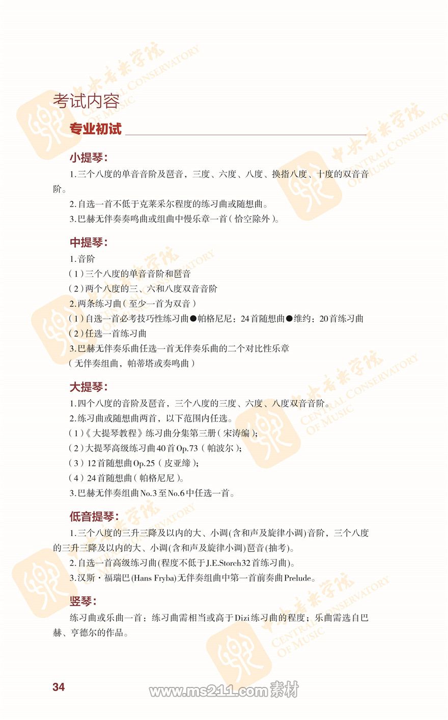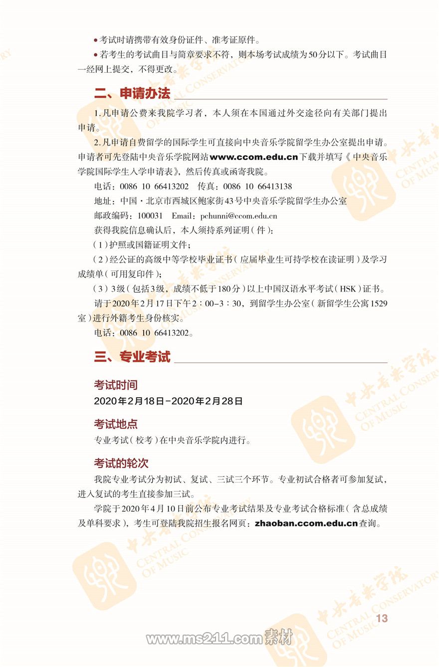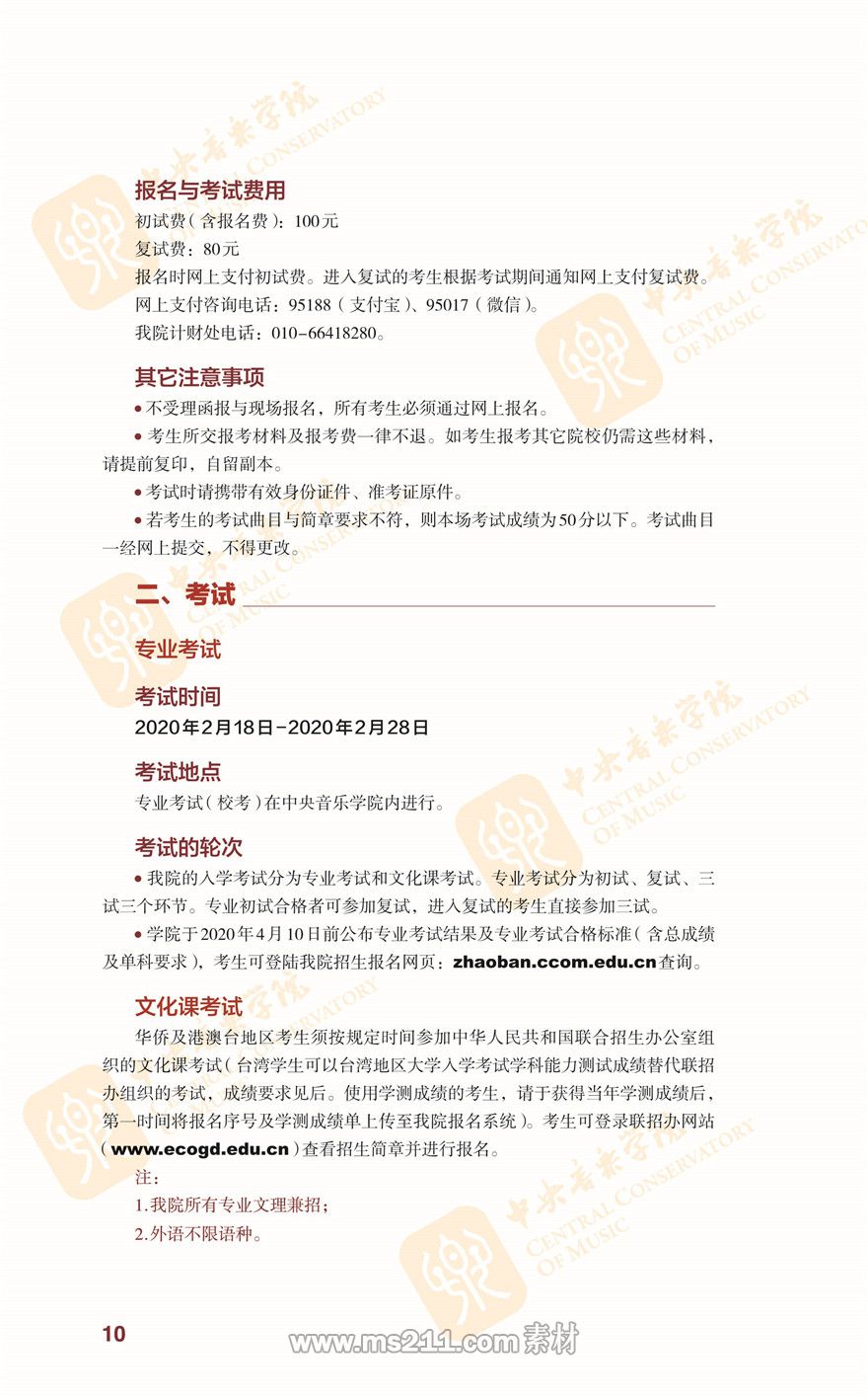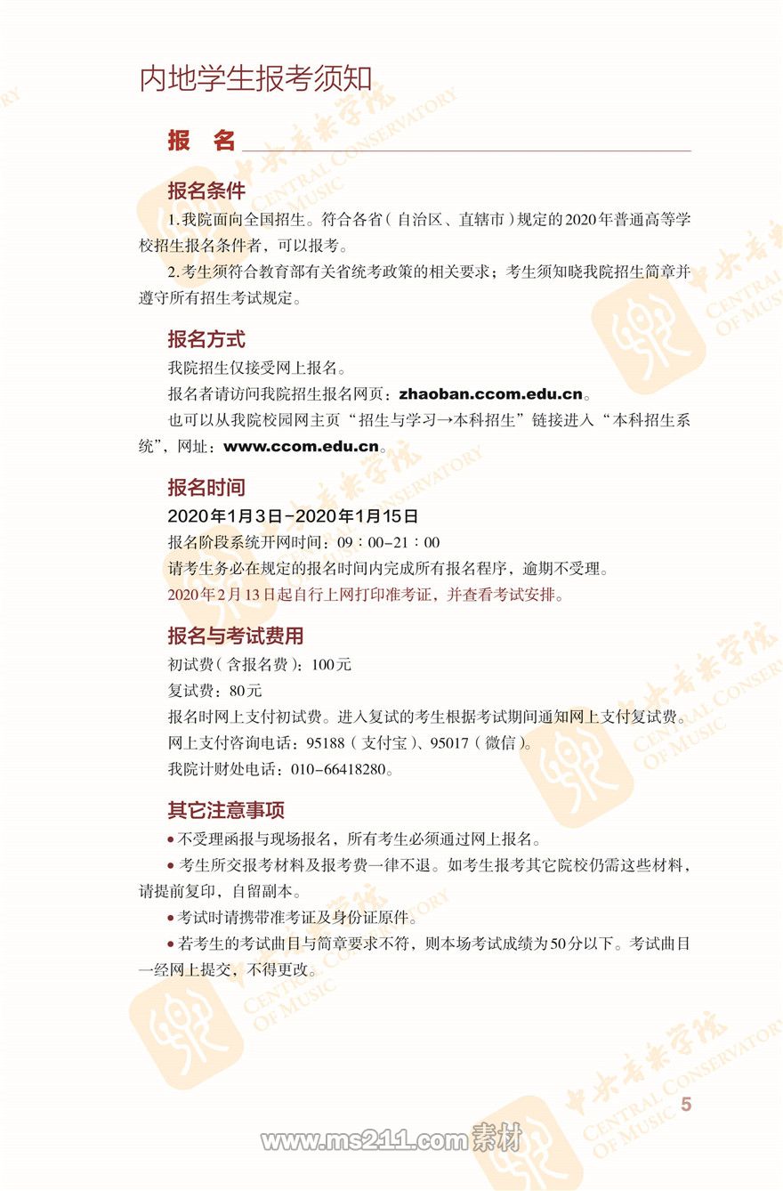 中央音樂學院2020年本科招生簡章