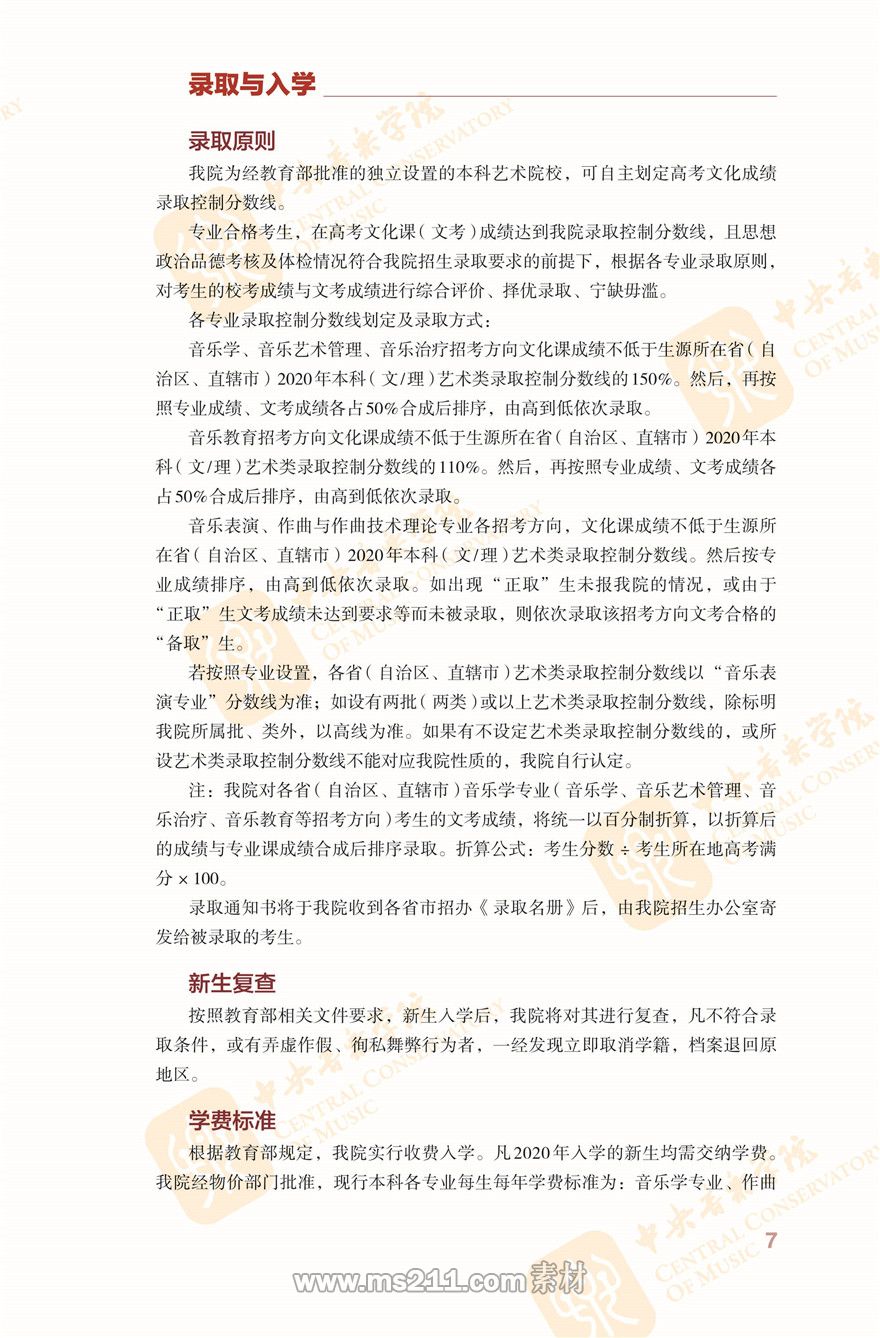 中央音樂學院2020年本科招生簡章(見下方)