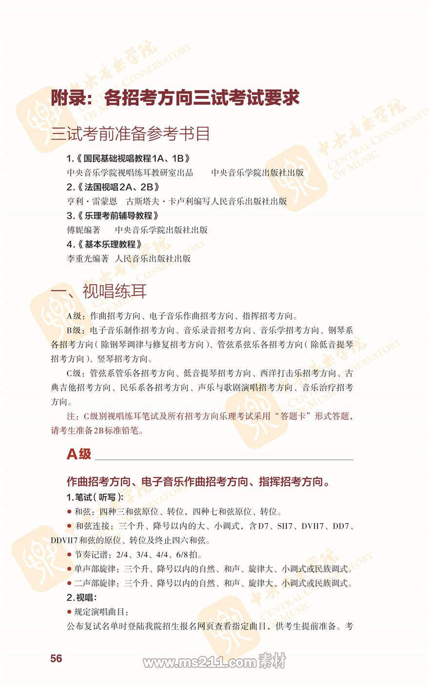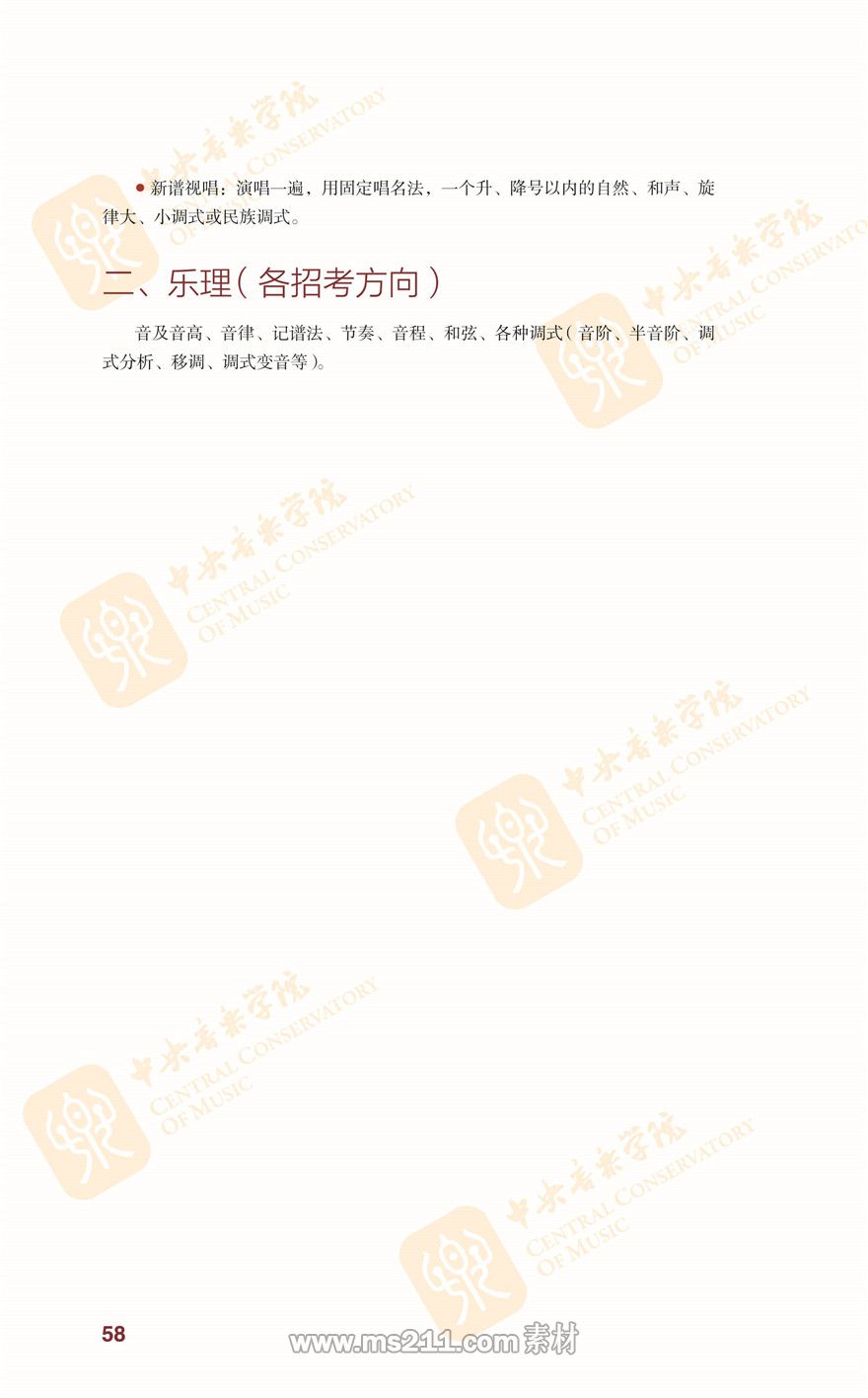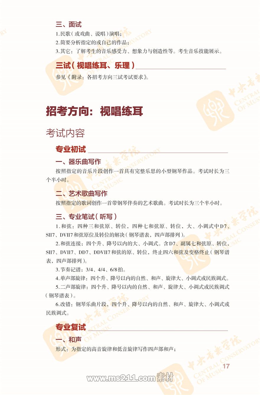 音樂學招考方向音樂聽辨內(nèi)容下載http://www.ccom.edu.cn/jxyx/yyxx/zskszl/201512/t20151207_38948.html