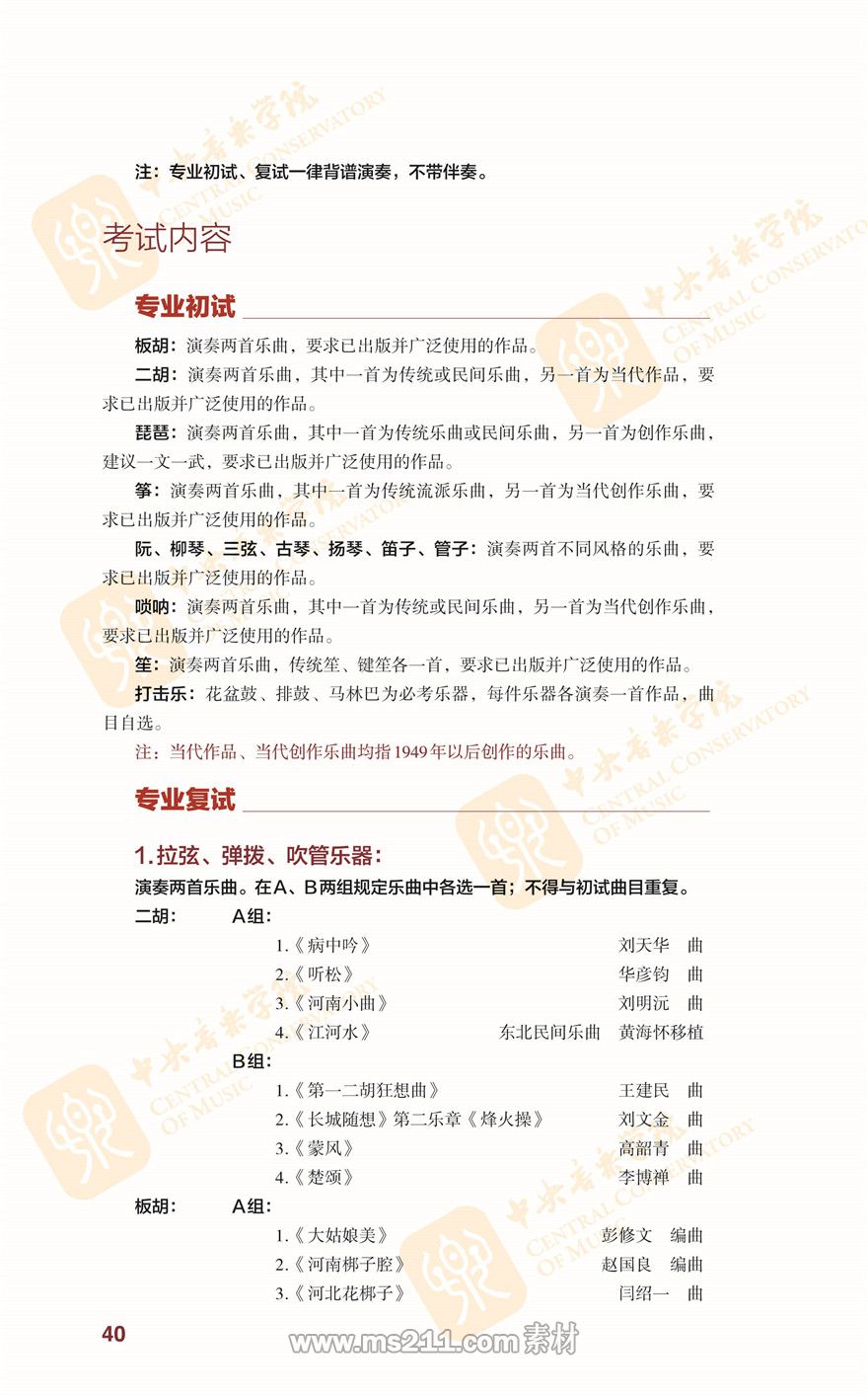 民樂系復試曲目曲譜鏈接:https://pan.baidu.com/s/1tfu3rI6ChioMSfZa6R2bdA