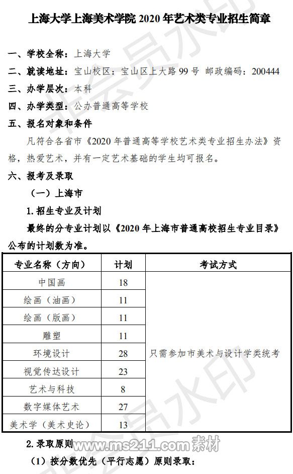 相關(guān)熱詞搜索:上海大學(xué)上海美術(shù)學(xué)院2020年藝術(shù)類專業(yè)招生簡章