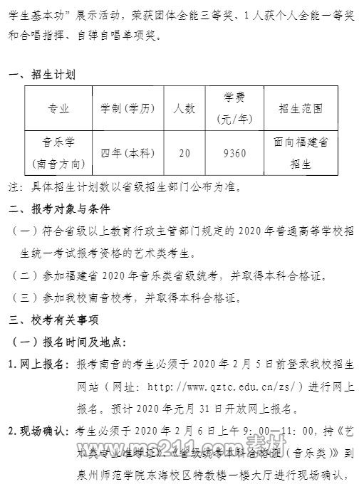 相關(guān)熱詞搜索: 泉州師范學(xué)院2020年泉州南音學(xué)院招生簡章