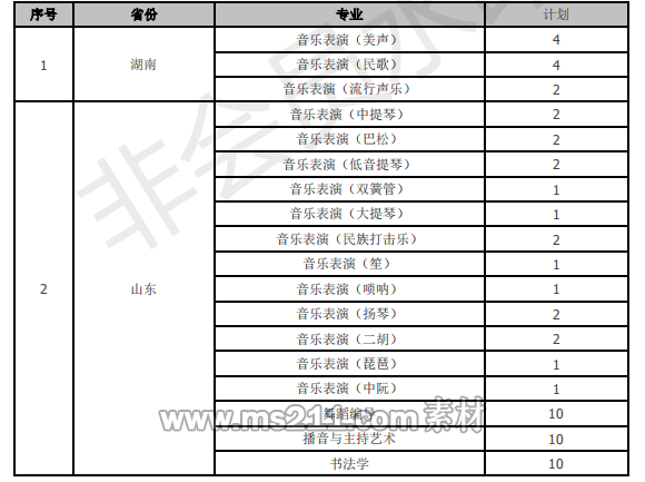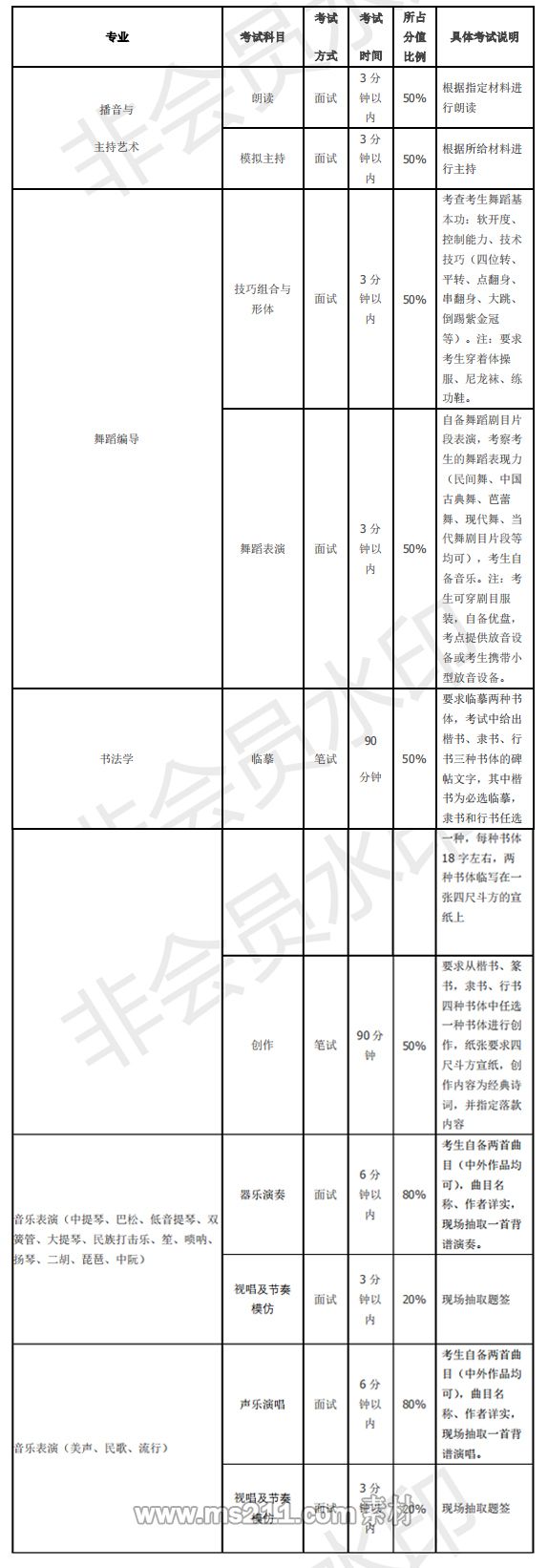 播音與主持藝術(shù)、書法學(xué)、音樂表演、舞蹈編導(dǎo)