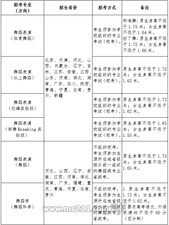 8.文化要求:舞蹈學(xué)專業(yè)要求高考語文、外語成績均不低于60分(百分制)。