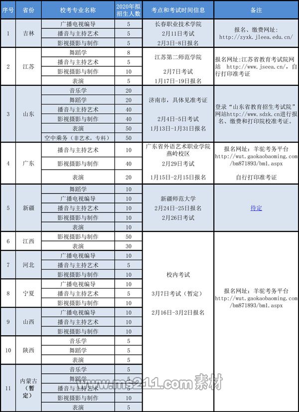 2020年我校在以下省市區(qū)進行音樂傳媒類??迹?/strong>