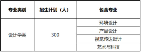 為給予學(xué)生更多的專業(yè)選擇機會,我校藝術(shù)類專業(yè)實行大類(設(shè)計學(xué)類)招生。一年后按照學(xué)習(xí)成績和學(xué)生志愿進(jìn)行專業(yè)分流。具體招生計劃如下: