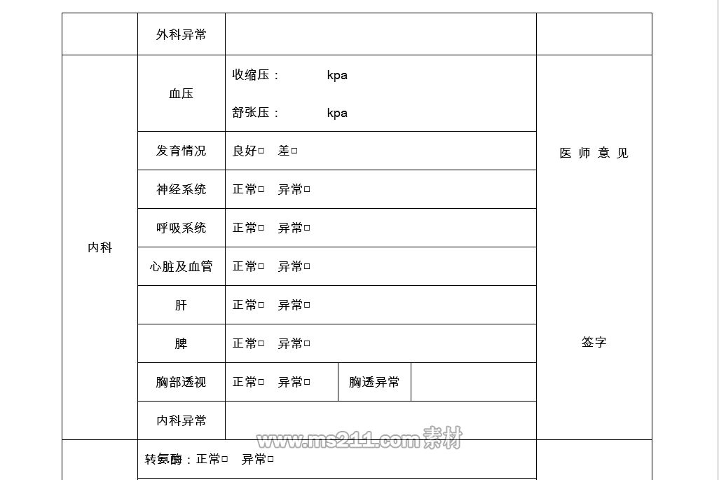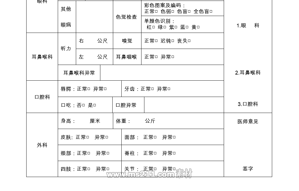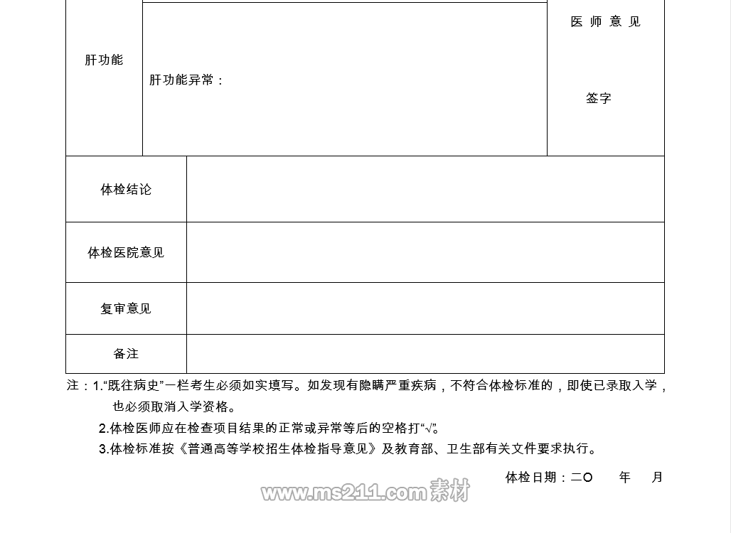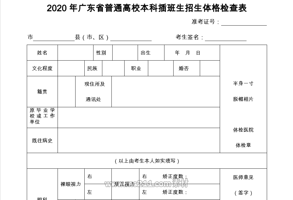 附件一: 2020年廣東省普通高校本科插班生招生體格檢查表