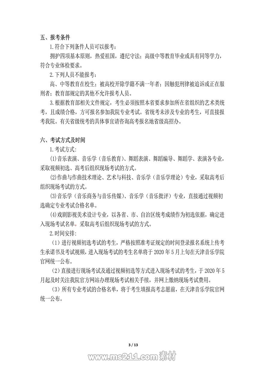 點擊查看源文件:天津音樂學院2020年本科招生簡章(調(diào)整版)