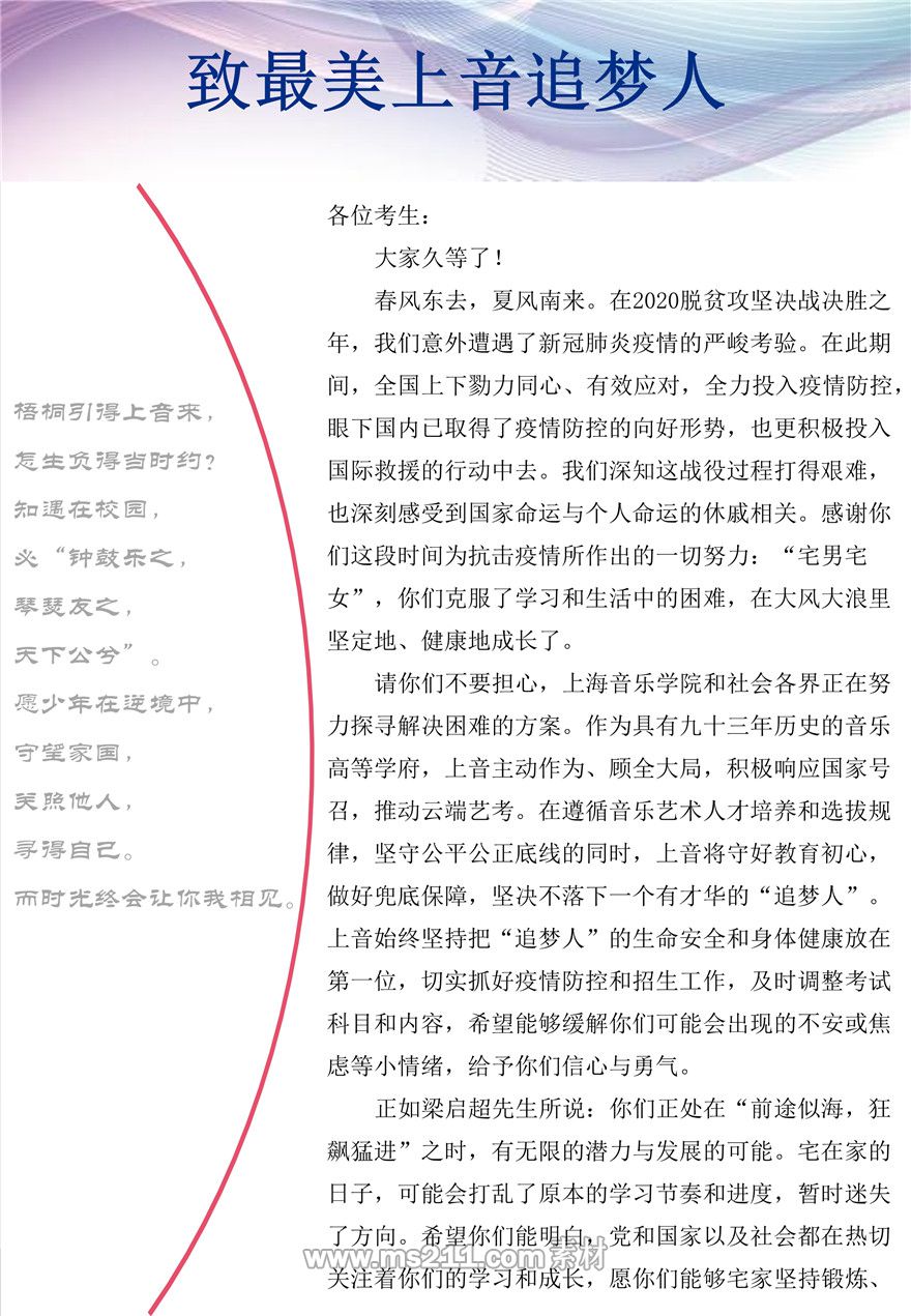 點(diǎn)擊查看下載源文件:2020年上海音樂學(xué)院本科藝術(shù)類專業(yè)招生簡章(調(diào)整版)