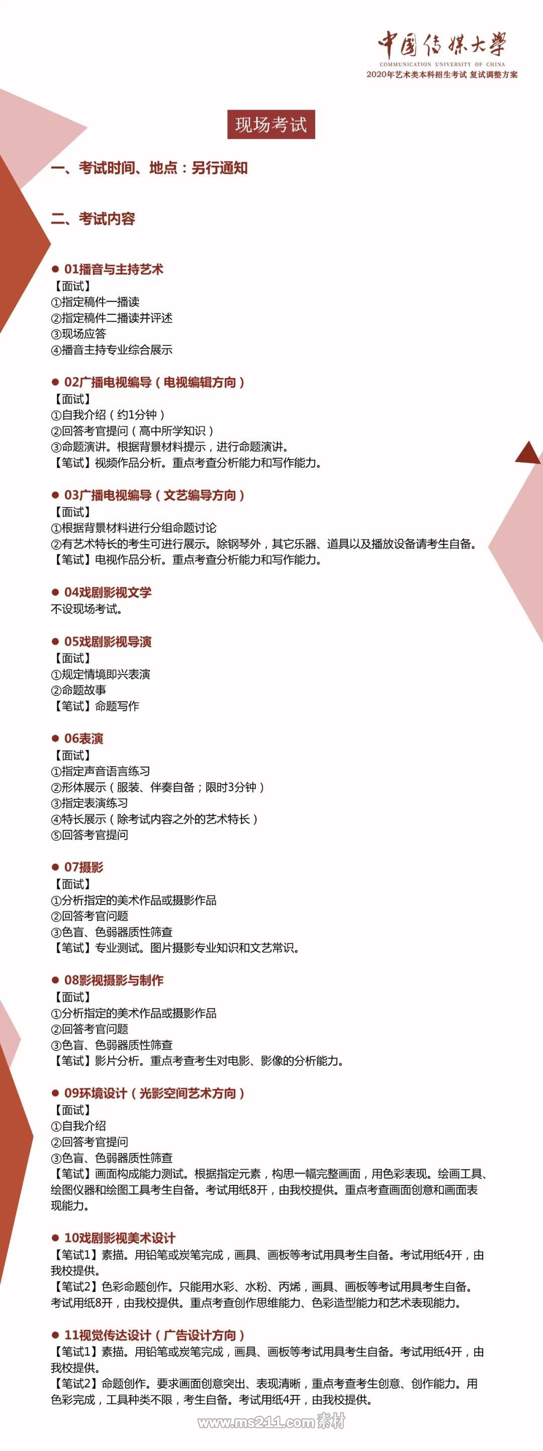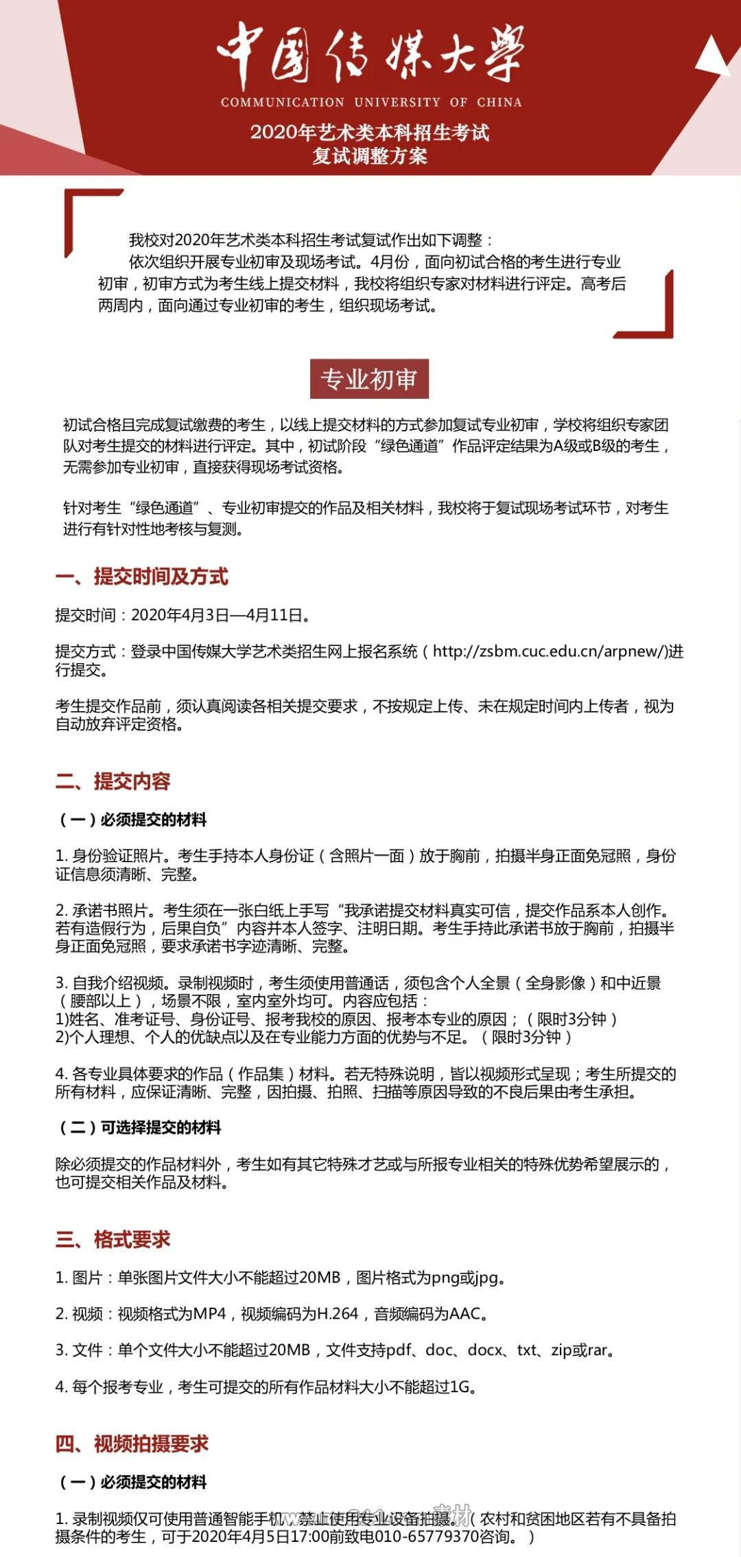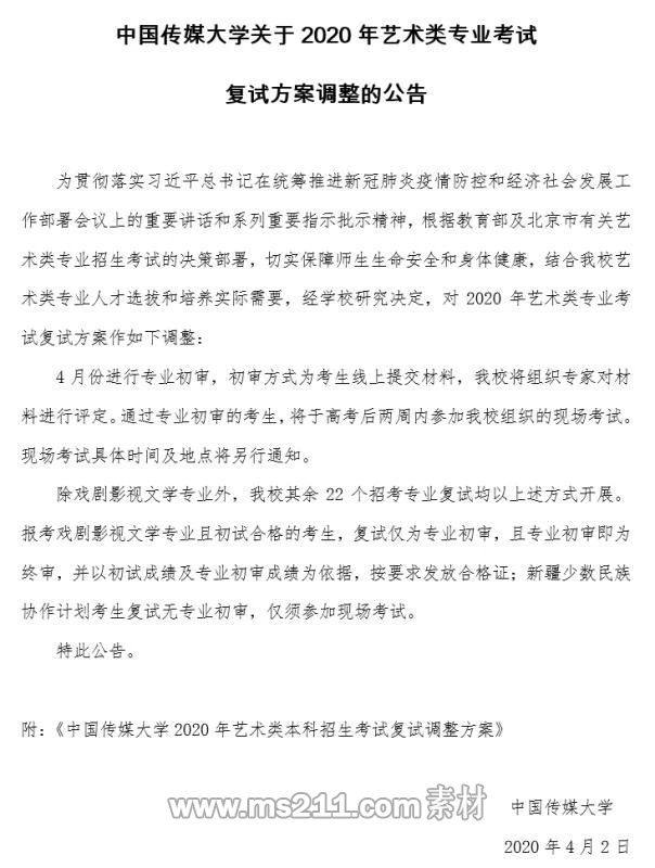 相關熱詞搜索:中國傳媒大學2020年藝術類專業(yè)復試方案調(diào)整的公告