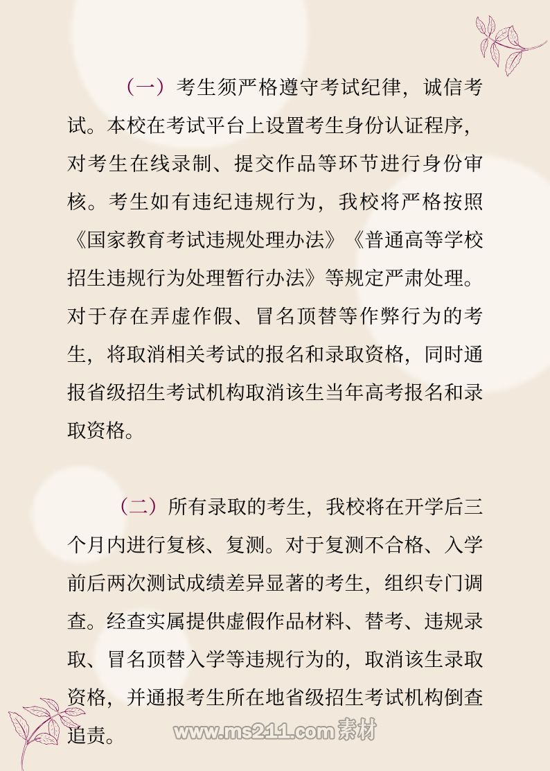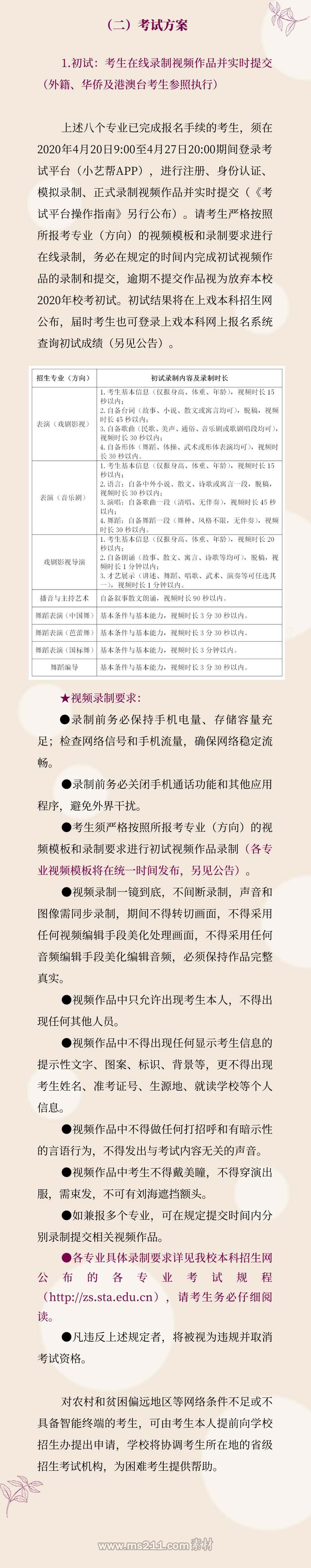 二、部分專業(yè)初試方式調(diào)整為提交視頻作品