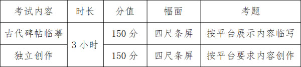 1、考生需自備手機、毛筆、墨汁、墨盒、毛氈、四尺條屏宣紙等。