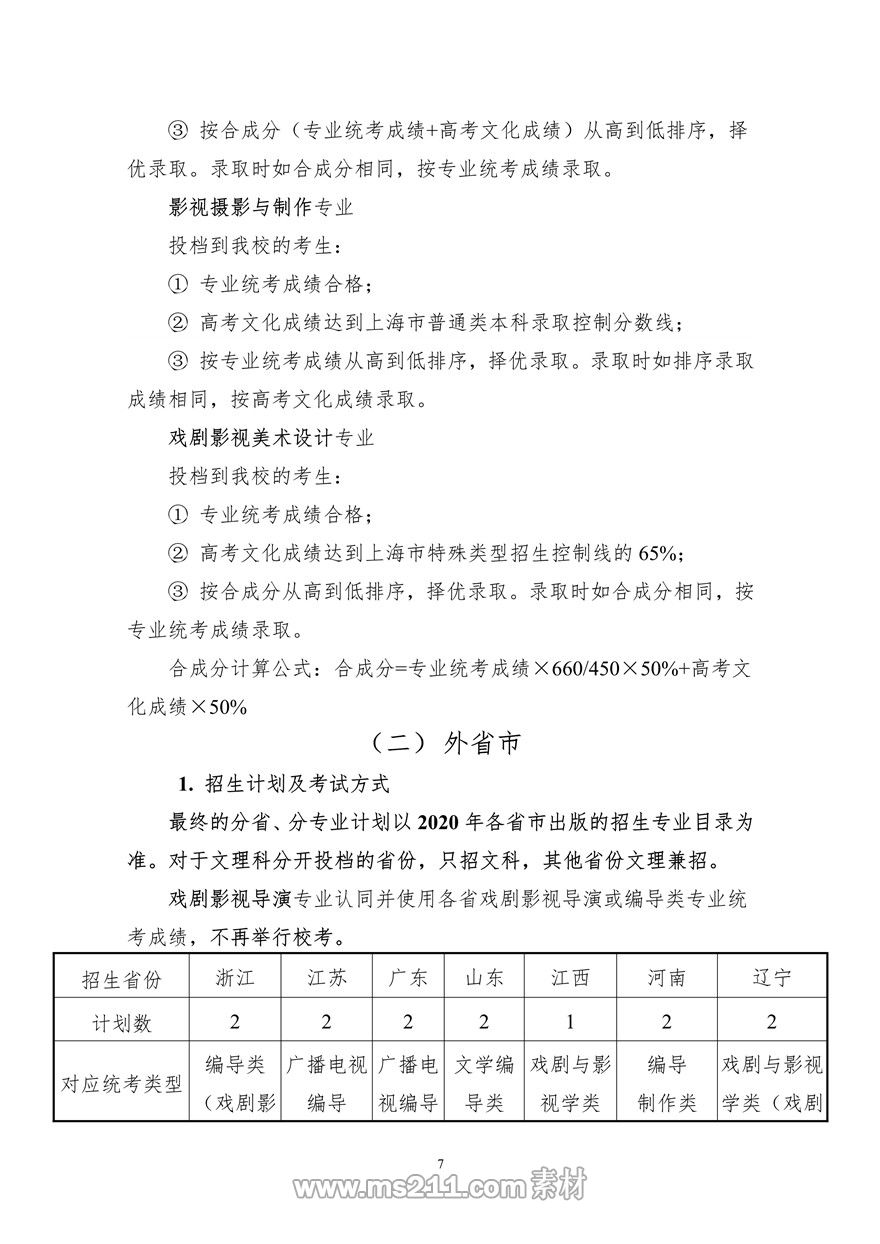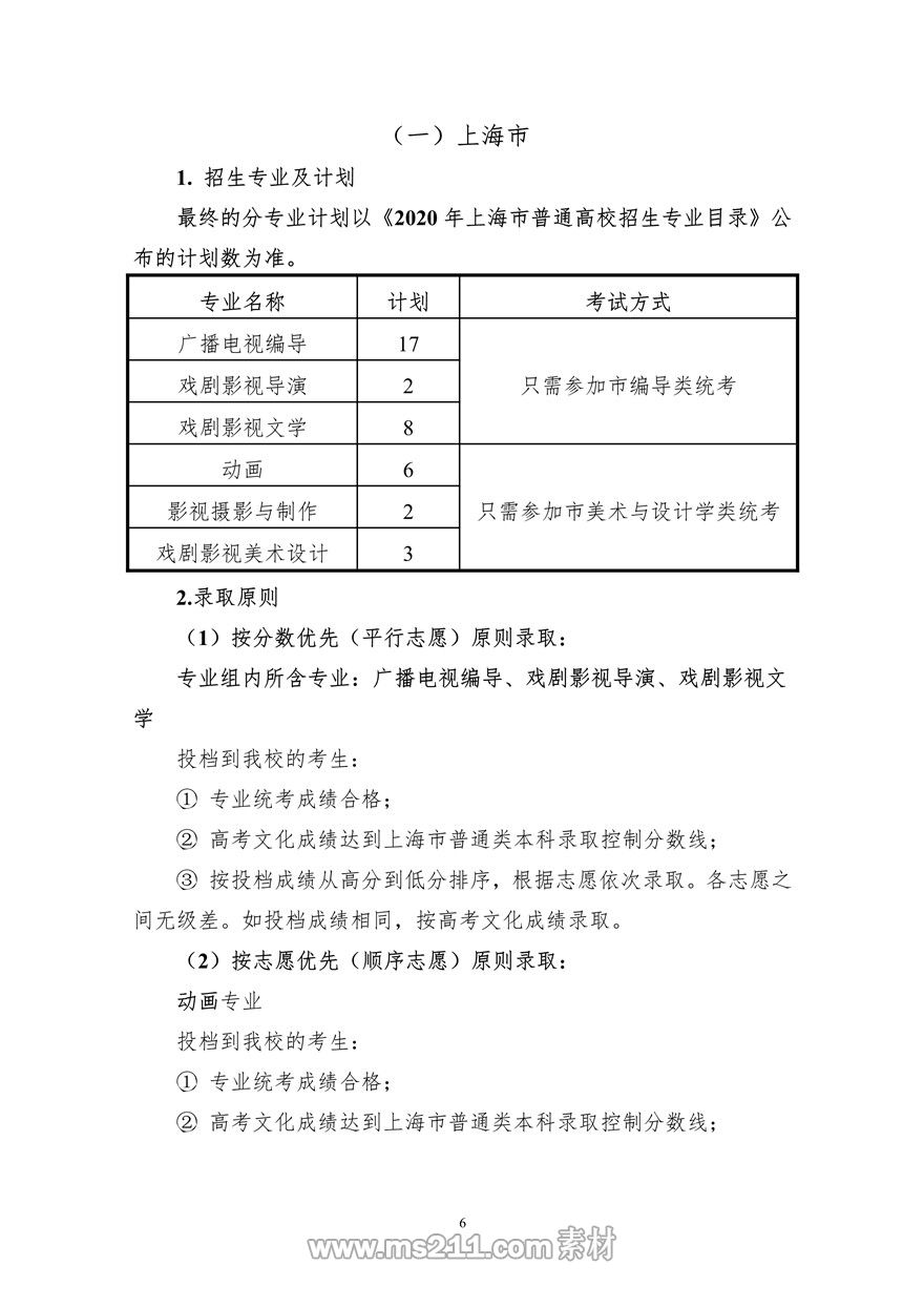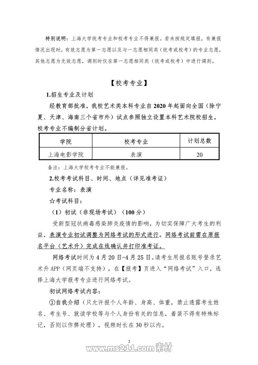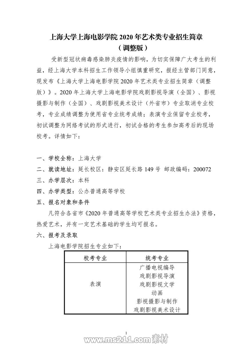 2020年上海大學(xué)上海電影學(xué)院藝術(shù)類??颊猩喺?調(diào)整版)