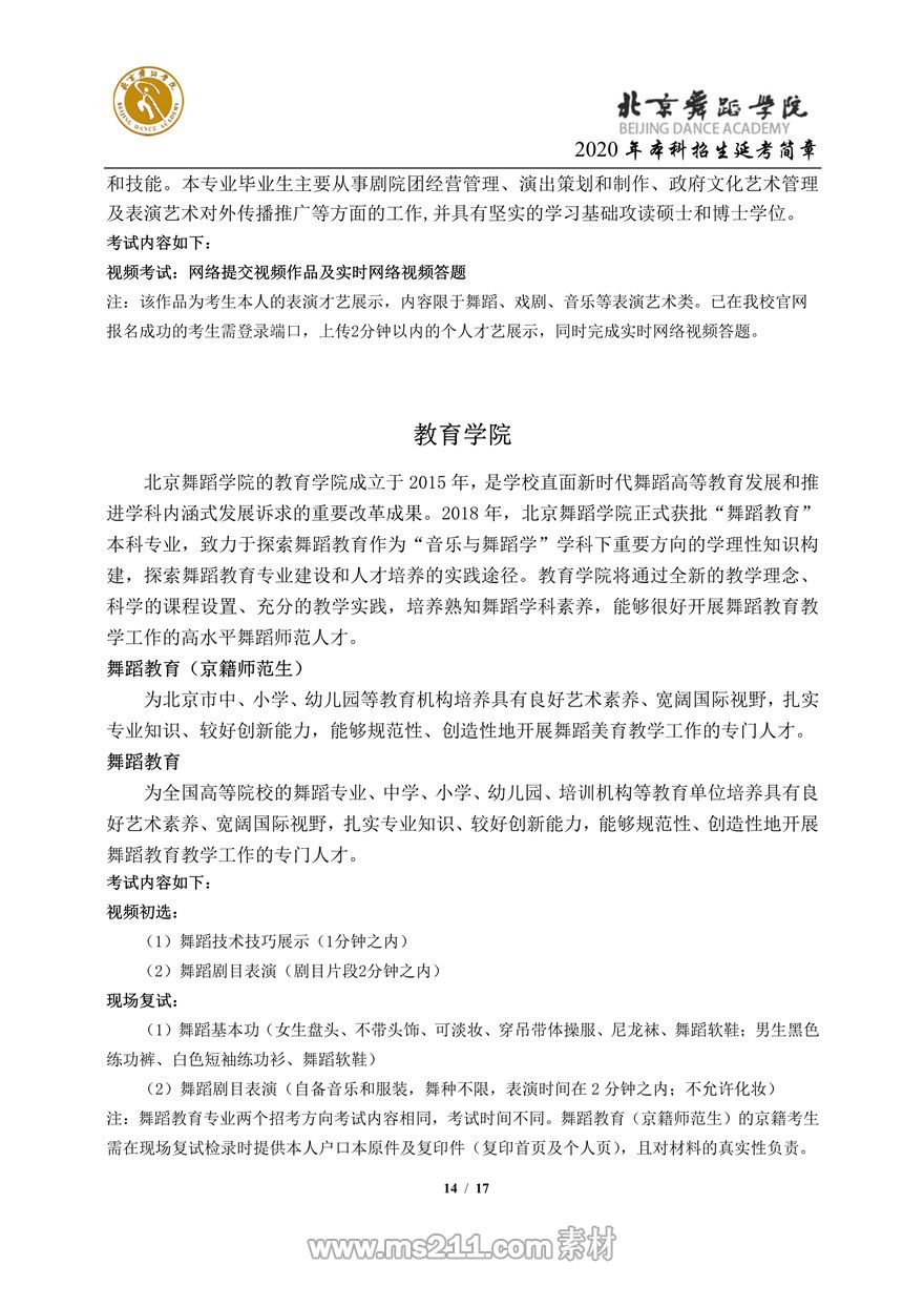 上一篇:2020年北京舞蹈學(xué)院藝術(shù)類專業(yè)??挤桨刚{(diào)整的公告 下一篇:最后一頁