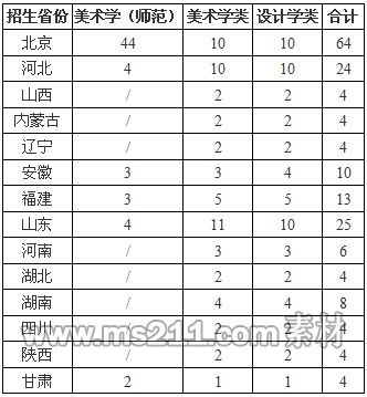 美術(shù)學院各專業(yè)的招生省、市、自治區(qū)(以下稱招生省份)及計劃人數(shù)如下: