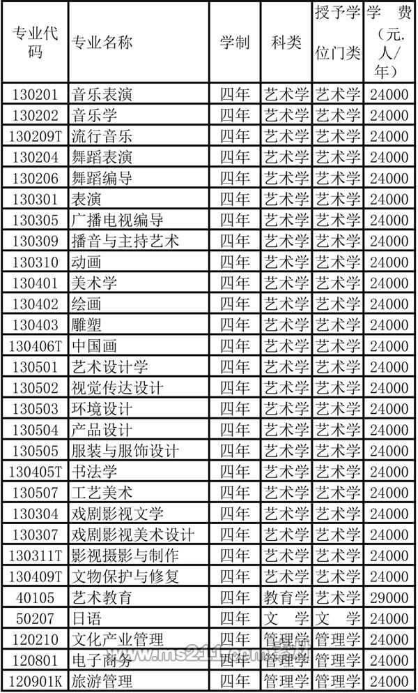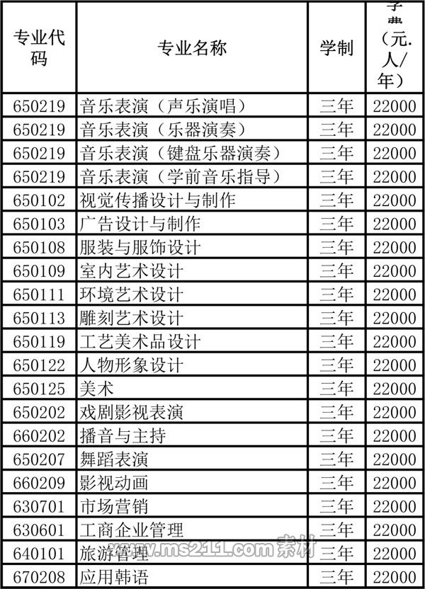 本科藝術(shù)類學(xué)生24000元/年,本科普通類學(xué)生24000元/年。本科普通類藝術(shù)教育專業(yè)29000元/年。高職???藝術(shù)類專業(yè))22000元/年,高職???普通類專業(yè))22000元/年。住宿費(fèi)3500元/年-5500元/年可選。