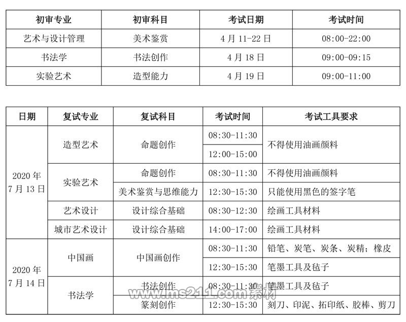 2.造型藝術(shù)、實驗藝術(shù)、中國畫、書法學(xué)專業(yè)考試午間不允許離場,請考生自備午餐;