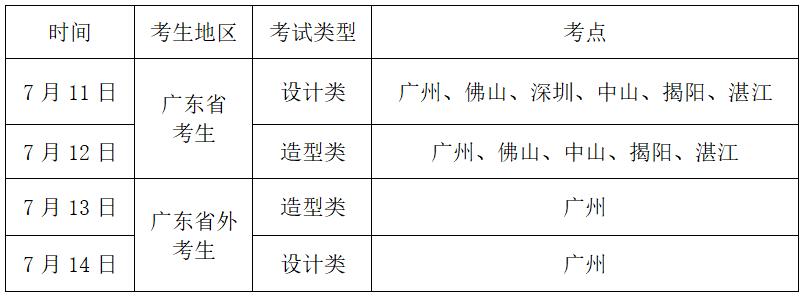 注意:根據(jù)考點(diǎn)實際情況,取消深圳考點(diǎn)“造型類”考試安排,預(yù)報名階段選擇深圳考點(diǎn)“造型類”考試的考生,統(tǒng)一安排到廣州考點(diǎn)進(jìn)行考試。