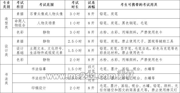 3.考試科目、范圍、時(shí)長(zhǎng)、畫幅和用具