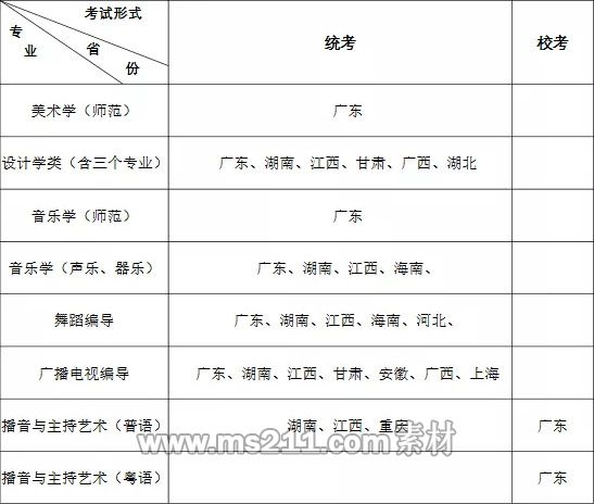 除播音與主持藝術(shù)(普語、粵語)在廣東省采取校考形式外(廣東省無此專業(yè)類別統(tǒng)考),其他專業(yè)(含播音與主持藝術(shù)專業(yè)在廣東省外招生)的術(shù)科成績均承認(rèn)招生相應(yīng)省份(自治區(qū)、直轄市)的藝術(shù)類術(shù)科統(tǒng)考成績。
