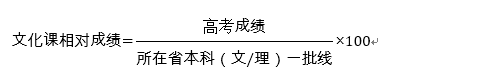 ③ 專業(yè)課折算成績(專業(yè)課成績÷專業(yè)入圍線×100)、文化課相對成績均四舍五入保留到小數點后兩位。