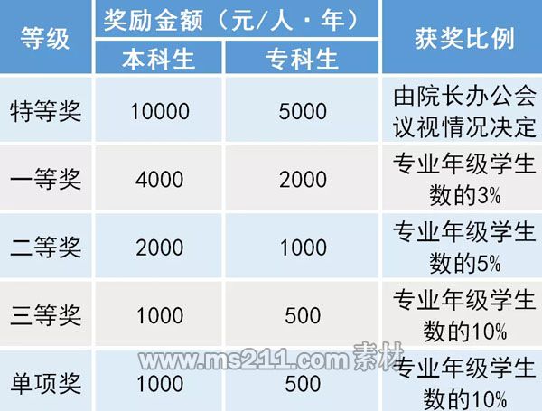 國家勵志獎學金:5000元/人·年(2019年標準)