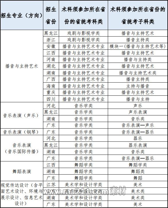 1.由于各省份規(guī)定的藝術(shù)類專業(yè)術(shù)科統(tǒng)考科類(或子科類)對(duì)應(yīng)的專業(yè)范圍不一致,如果與生源省份的規(guī)定不一致,以生源省份的規(guī)定為準(zhǔn)。