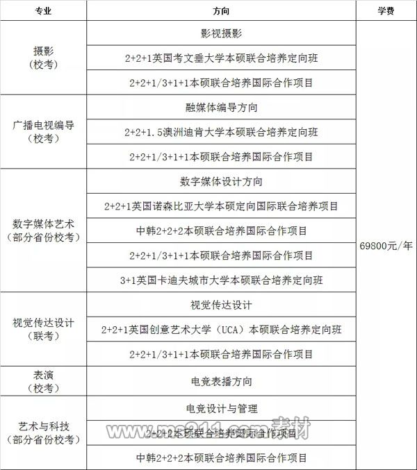 備注:2021年學(xué)校在各省(市、區(qū))招生專業(yè)、招生計(jì)劃數(shù)、收費(fèi)標(biāo)準(zhǔn)等均以該省(市、區(qū))教育主管部門最終公布為準(zhǔn)。另數(shù)字媒體藝術(shù)、廣播電視編導(dǎo)、攝影、表演、藝術(shù)與科技專業(yè)在部分省份須參加我校校考。