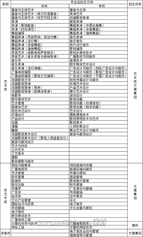 注:各省(市、自治區(qū))招考專業(yè)(方向)以當(dāng)?shù)卣猩荚囍鞴懿块T公告為準(zhǔn)。