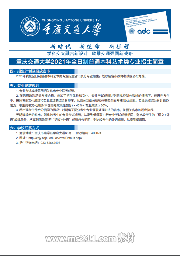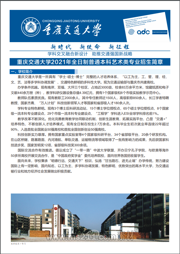 相關(guān)熱詞搜索:重慶交通大學(xué) / 2021年 / 藝術(shù)類 / 招生簡章