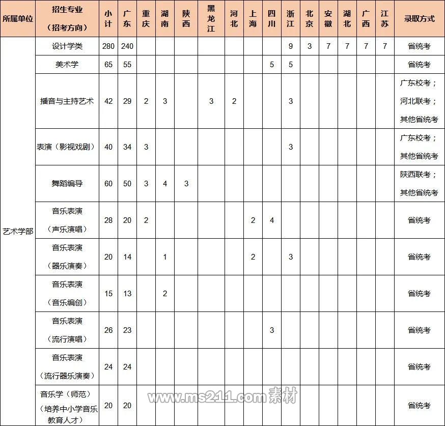 1.如招生省份藝術(shù)類計(jì)劃不分文理,則藝術(shù)文理兼招,否則僅招藝術(shù)文(廣西、湖南、黑龍江、陜西只招藝術(shù)文,以省招生專業(yè)目錄為準(zhǔn));