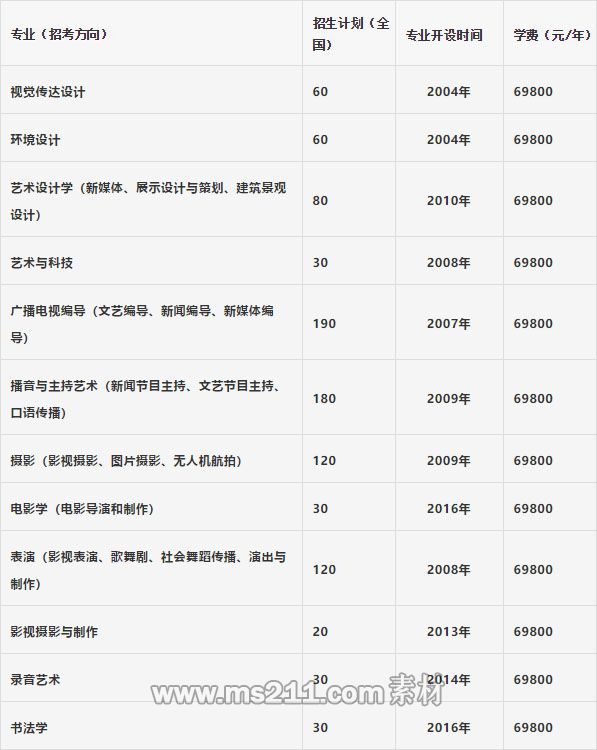 6、學(xué)校沒(méi)有組織專業(yè)測(cè)試省份的藝術(shù)與科技、廣播電視編導(dǎo)、播音與主持藝術(shù)、攝影、電影學(xué)、錄音藝術(shù)、表演、書法學(xué)、影視攝影與制作專業(yè)及專業(yè)方向,使用各省(自治區(qū)、直轄市)專業(yè)統(tǒng)考(聯(lián)考)成績(jī)。