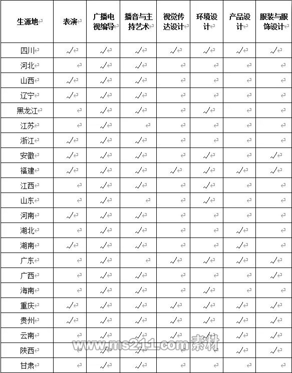 招生省份與專業(yè)