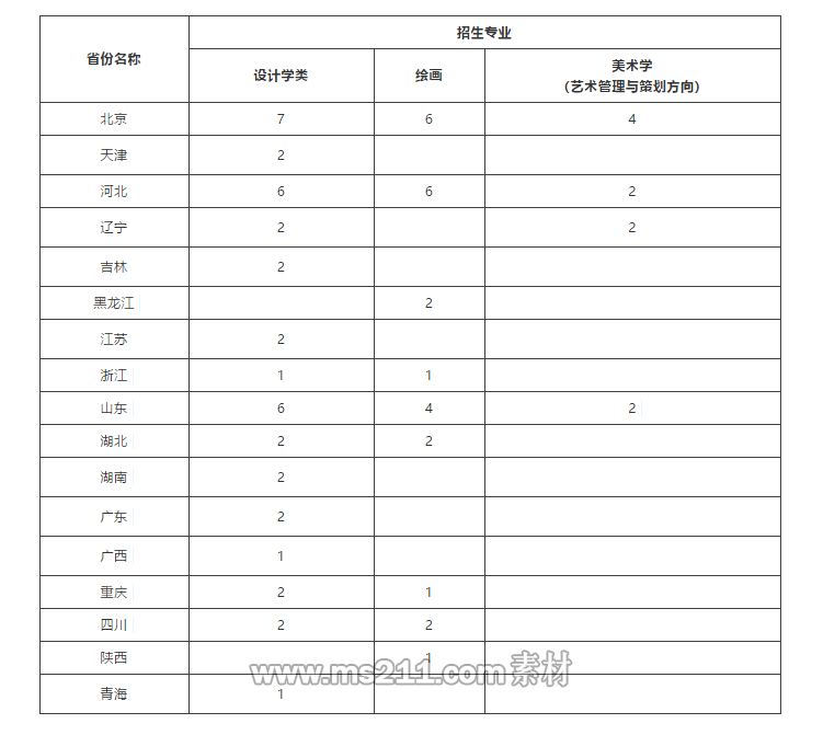 1.基本規(guī)則:考生專業(yè)統(tǒng)考成績及高考文化課成績須符合各專業(yè)相關(guān)成績要求(詳見本簡章三、四),按各專業(yè)具體規(guī)則和分省計(jì)劃由高到底錄取。