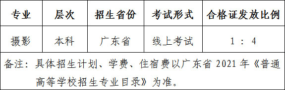 2021年攝影專業(yè)??颊猩鷥H限已取得普通高等學(xué)校招生報(bào)名資格的廣東省藝術(shù)類考生。根據(jù)專業(yè)需要,攝影專業(yè)不招色盲、色弱考生,請(qǐng)夜盲考生慎重報(bào)考。