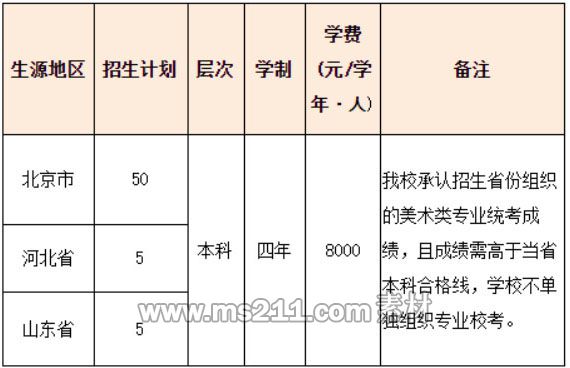 環(huán)境設計專業(yè)是我校園林學院下設的唯一藝術類本科專業(yè),于2003年開始招生。2021年我校藝術類環(huán)境設計專業(yè)面向北京、河北、山東3個省市計劃招生60人,該專業(yè)選考科目不限,學制4年,具體如下: