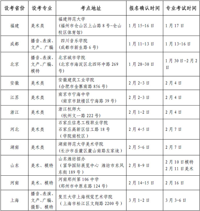 2、報(bào)考我校美術(shù)類專業(yè)(含繪畫(huà)、雕塑、藝術(shù)設(shè)計(jì)、動(dòng)畫(huà)、廣告學(xué)、工業(yè)設(shè)計(jì)、數(shù)字媒體、會(huì)展藝術(shù)與技術(shù)等)的考生,需按指定時(shí)間現(xiàn)場(chǎng)報(bào)名考試。同時(shí),美術(shù)類專業(yè)報(bào)考考生只能在本省考點(diǎn)參加我校專業(yè)???,其他省市考點(diǎn)不受理跨省考生。