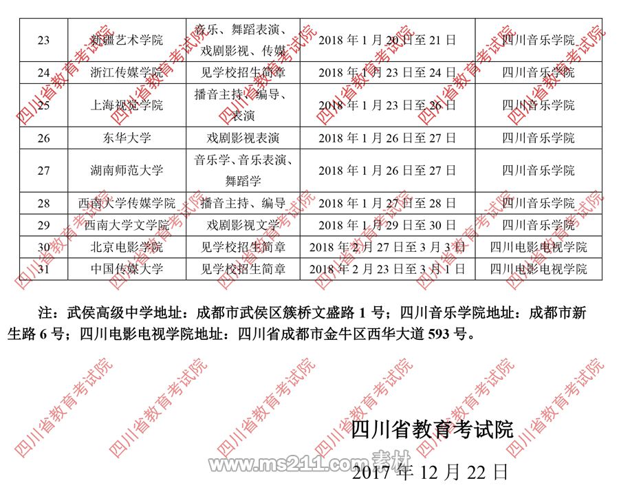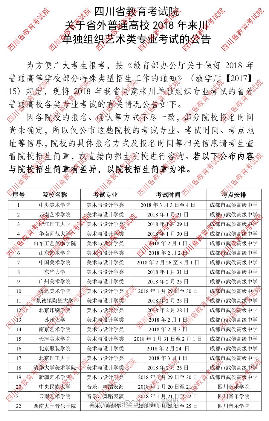 ms211備注:還有部分高校招收四川省考生,但沒(méi)有在四川省設(shè)置考點(diǎn),考生必須到其他考點(diǎn)(或校內(nèi)考點(diǎn))參加???。例如四川美術(shù)學(xué)院、湖北美術(shù)學(xué)院、西安美術(shù)學(xué)院、西南大學(xué)等,具體詳見(jiàn)各校2018年招生簡(jiǎn)章。