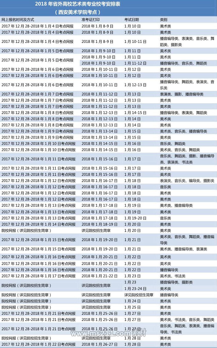 2018年省外高校藝術類專業(yè)??伎荚嚢才牛ㄎ靼裁佬g學院考點)
