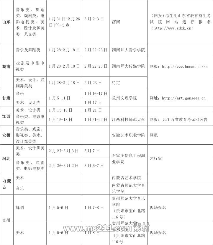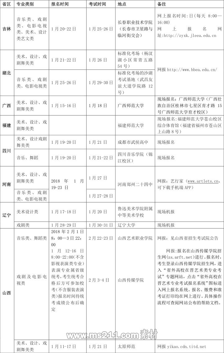 云南藝術(shù)學(xué)院2018年普通本科招生省外考試時間