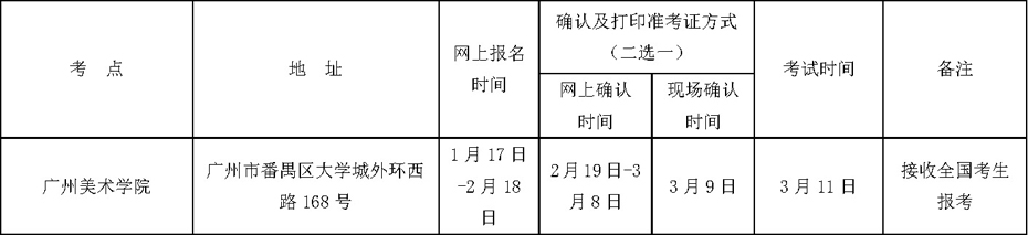 2018年廣州美術(shù)學(xué)院本科招生考試時間、地點