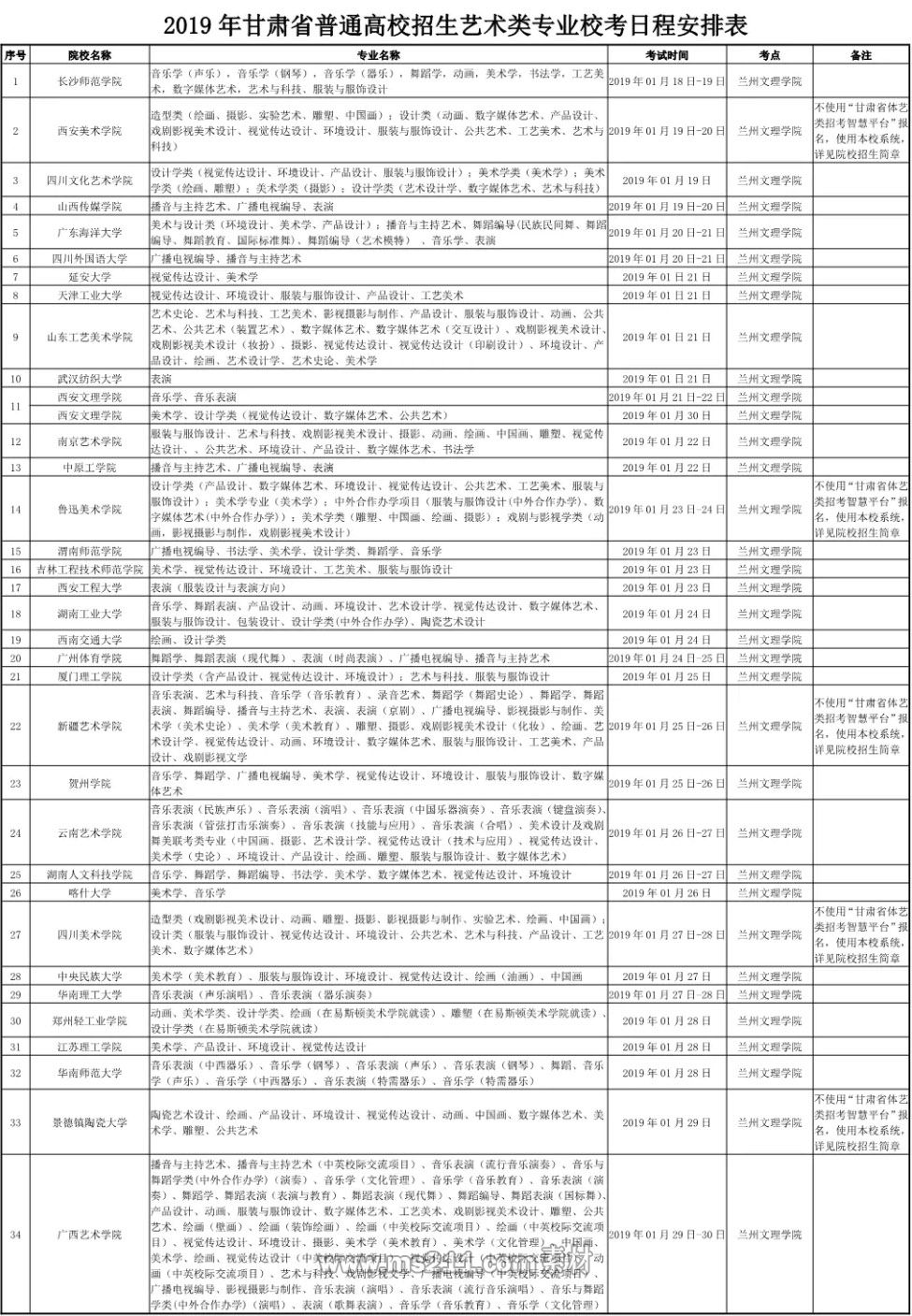 2019年甘肅省藝術(shù)類專業(yè)校考網(wǎng)上報名注意事項及日程安排表