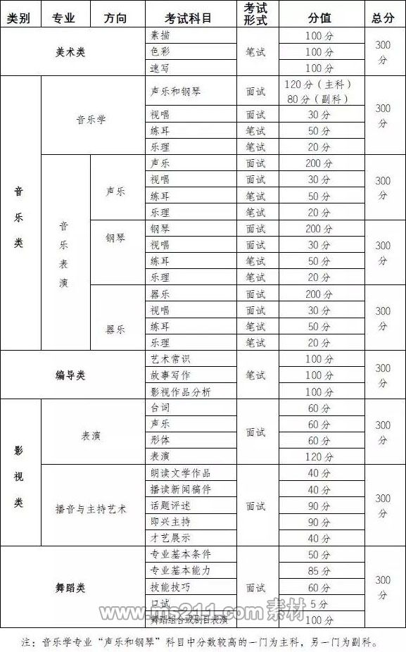 除我市統(tǒng)考未涉及藝術(shù)類專業(yè)外,其他藝術(shù)類考生均需參加我市專業(yè)統(tǒng)考。校考專業(yè)類別及報(bào)考要求以學(xué)校招生簡(jiǎn)章為準(zhǔn)。