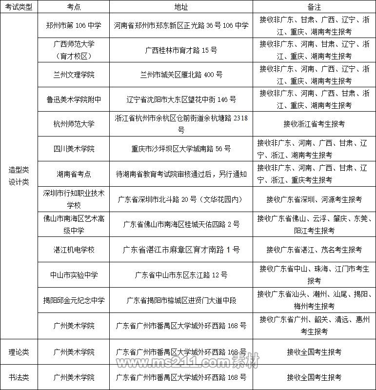 注:①我校分兩階段進行網(wǎng)上報名:第一階段,每位考生僅可選擇“造型類”或“設計類”其中之一進行報名;第二階段,如考點容量未滿,考生即可兼報另一種類別。