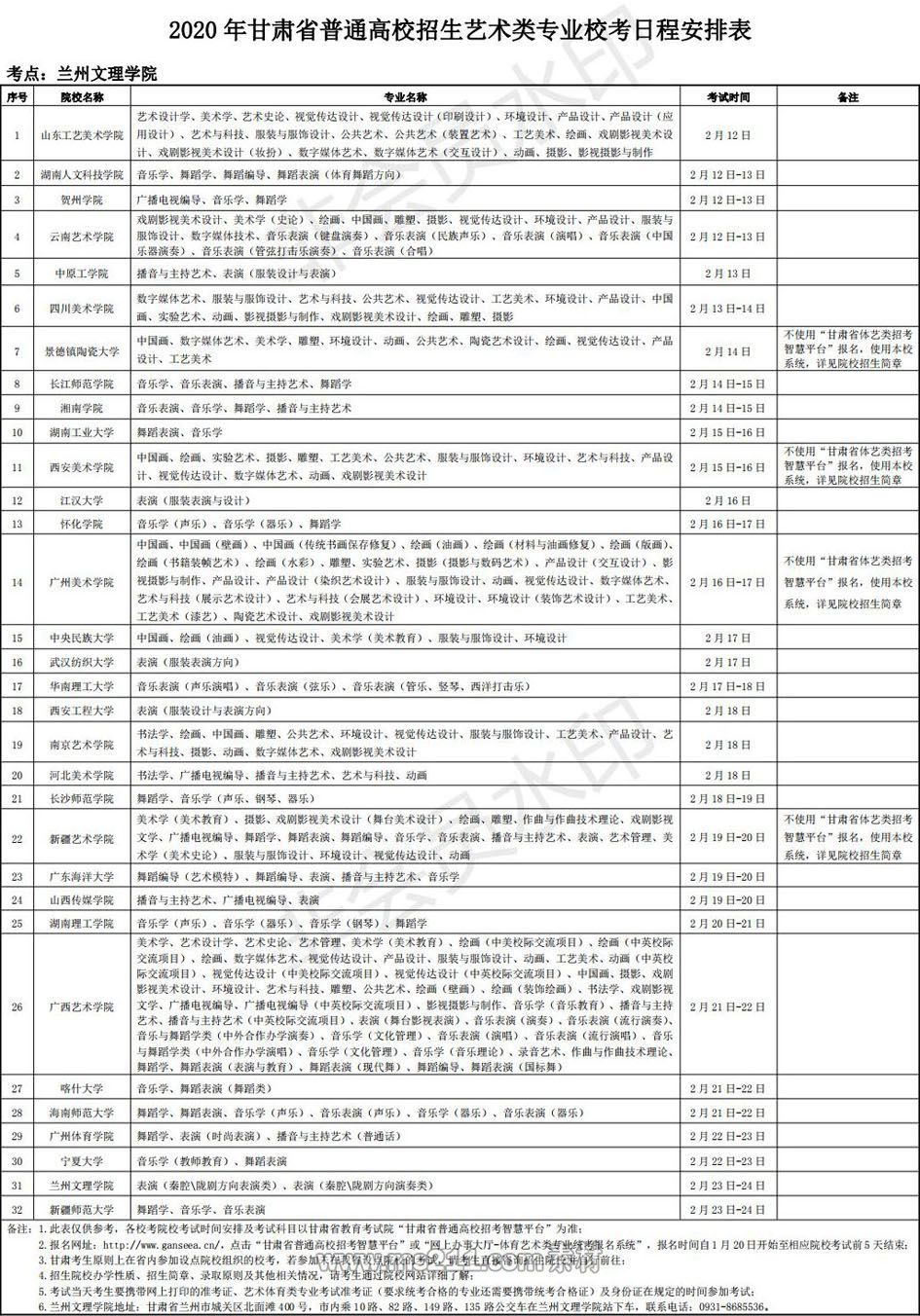 藝術(shù)校考考點(diǎn)設(shè)在:蘭州文理學(xué)院。